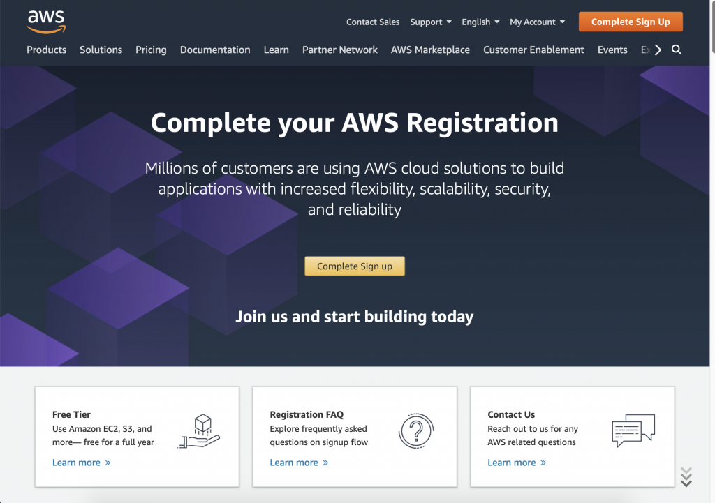 During the setup process in step 3 we’ll select “Free Tier” options. However, since some services have a nominal fee (e.g. $1 – $3 / month for domain address routing), you’ll need to configure payment options when you create your account.