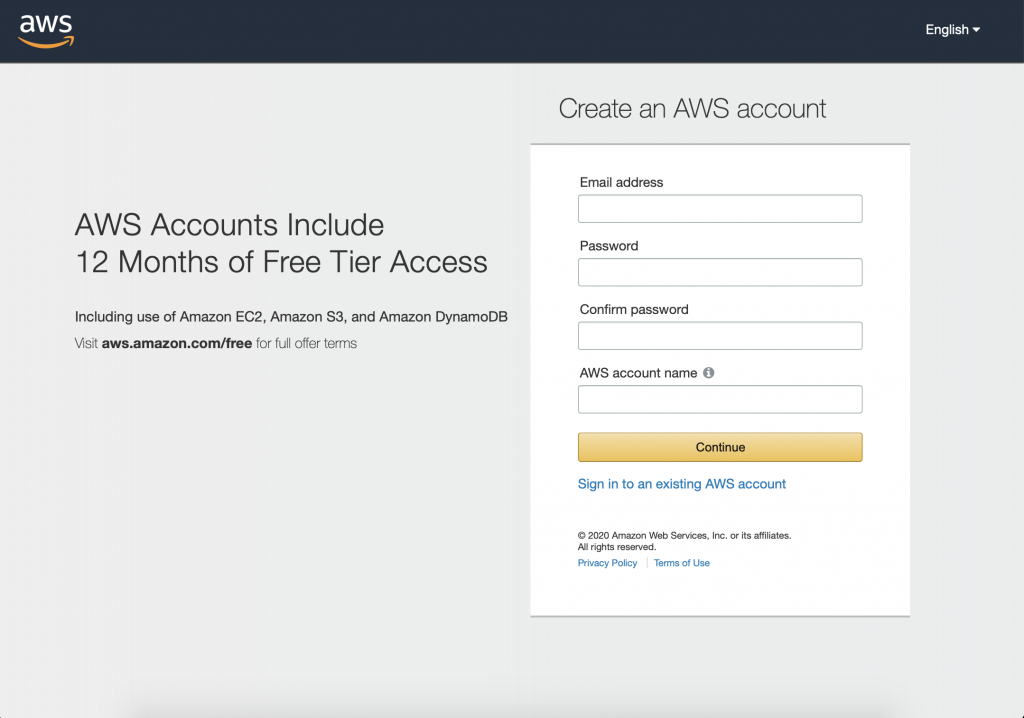 2. Obtain Account with Amazon Web Services