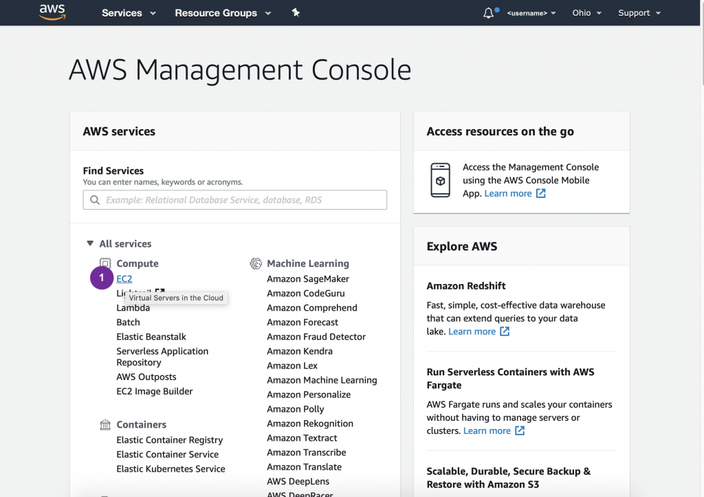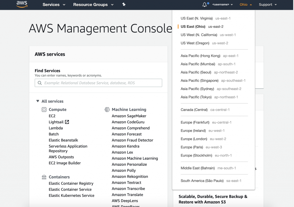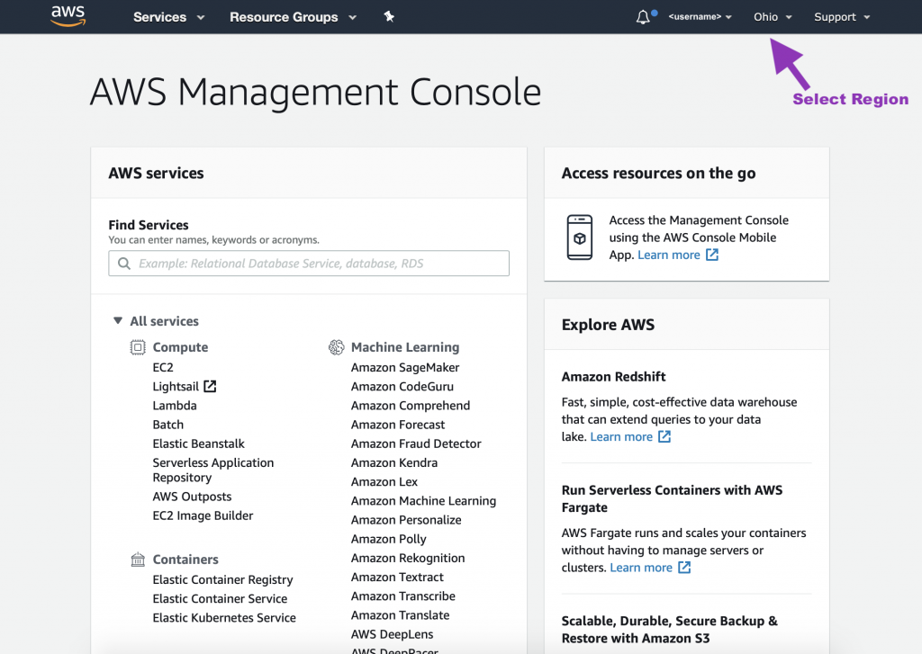 Once your AWS account is set up, you should be logged in and able to see a screen like the following.