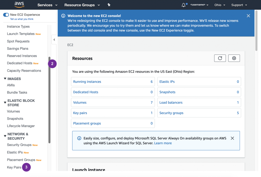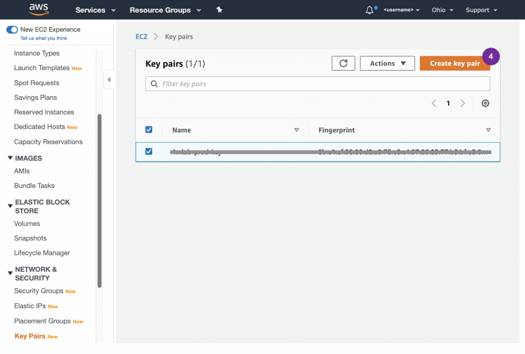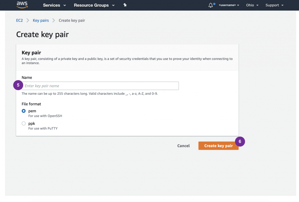 Follow directions provided by AWS for creating a key pair.