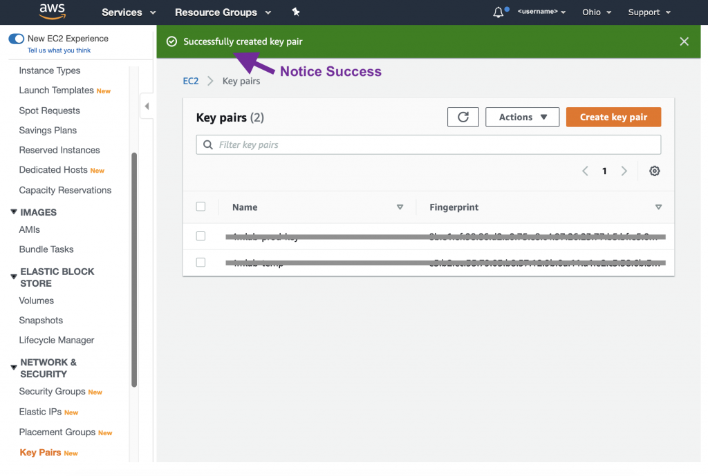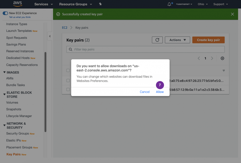 The PEM (or PPK) file will be saved to your computer – most likely in the “Downloads” folder. You may want to move it to another location. Warning, your desktop is not a safe place. There are management tools for these kind of files, or you can use a hidden folder such as .ssh in your user directory (e.g. ~/.ssh).
